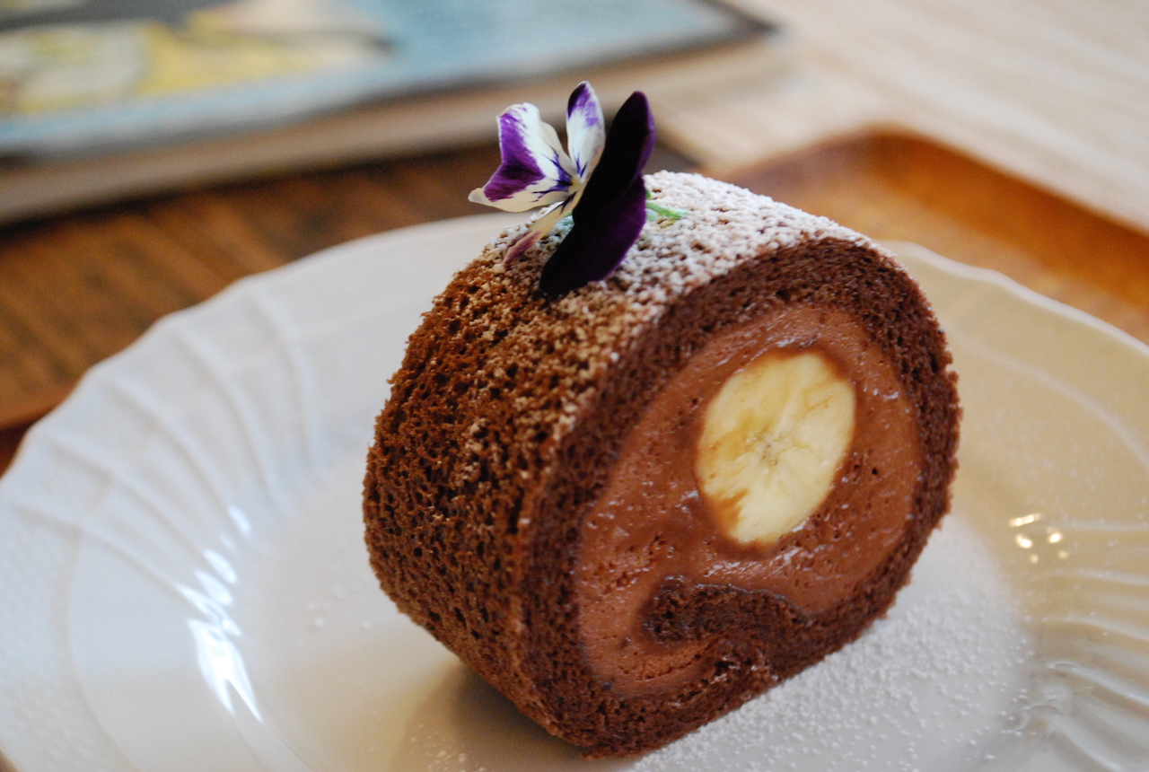 しっとりほろほろのロール生地が美味しいのです。中に巻くのはフランス産有機チョコレートを使った濃厚な生チョコクリームと有機バナナ。大人のロールケーキをお楽しみください。